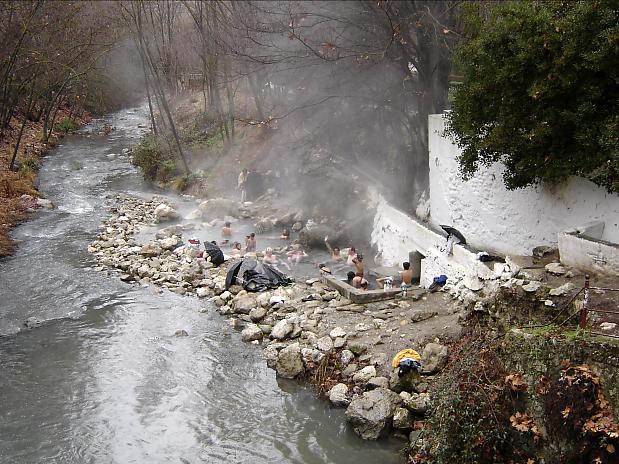 eine heisse Quelle mündet. Zwei Stunden hängen wir im heissen