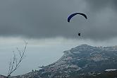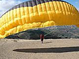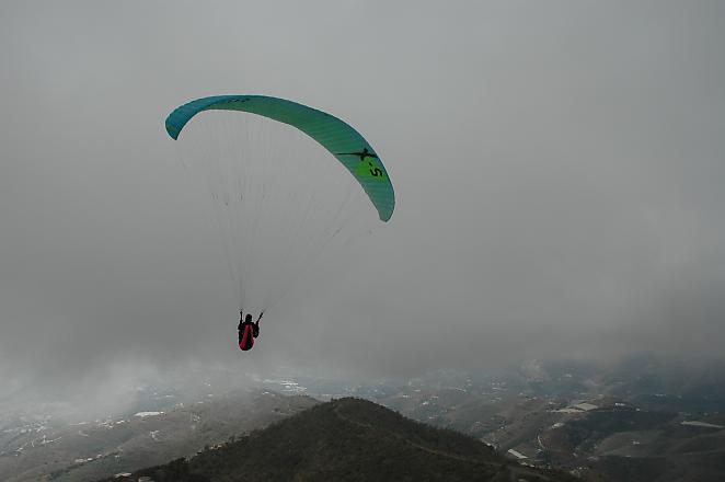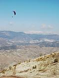 Das Wetter sieht nicht so günstig aus, dafür ist es schwachwindig und Andy meint, um Otivar müsste es fliegbar sein. Also bewegt sich der ganze Tross in das wilde Tal hinein, wo Schufi sich noch gestern auf keinen Fall an die Leinen hängen wollte. Vor allem der Landeplatz sieht von oben spektakulär aus: Auf drei Seiten gehts steil runter und einige Bäume stehen auch noch im Weg. Von nahe betrachtet relativiert sich das allerdings, denn man kann gut Höhe abbauen und von der Strasse her anfliegen. Bloss in die Dornen rundum sollte man den Schirm nicht setzen :-)