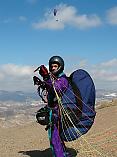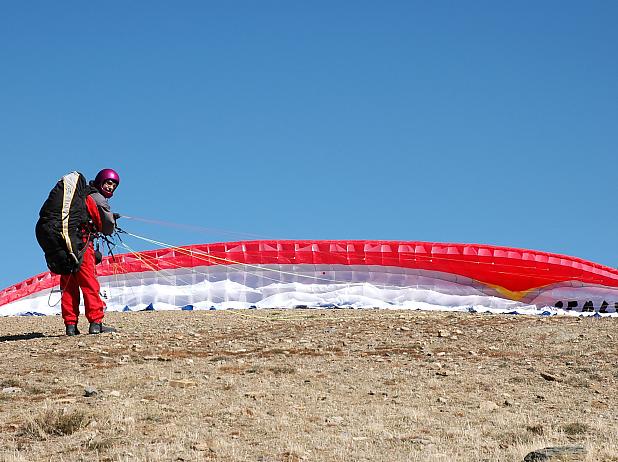 Andy hatte den rechten Riecher. Nach einem kurzen Stop im Restaurant beim Eingang zum Sierra Nevada Nationalpark in der Nähe des Startplatzes klart der Himmel immer mehr auf und wir können auf der kahlen Kuppe auslegen. Ein grosser Startplatz lädt zu Windspielen ein.